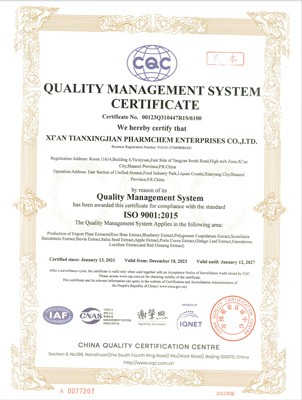 Kína első gyártója, amely resveratrol, genistein és szőlőmag-kivonatot fejleszt és gyárt, és számos szabadalmi tanúsítványt szerzett.
